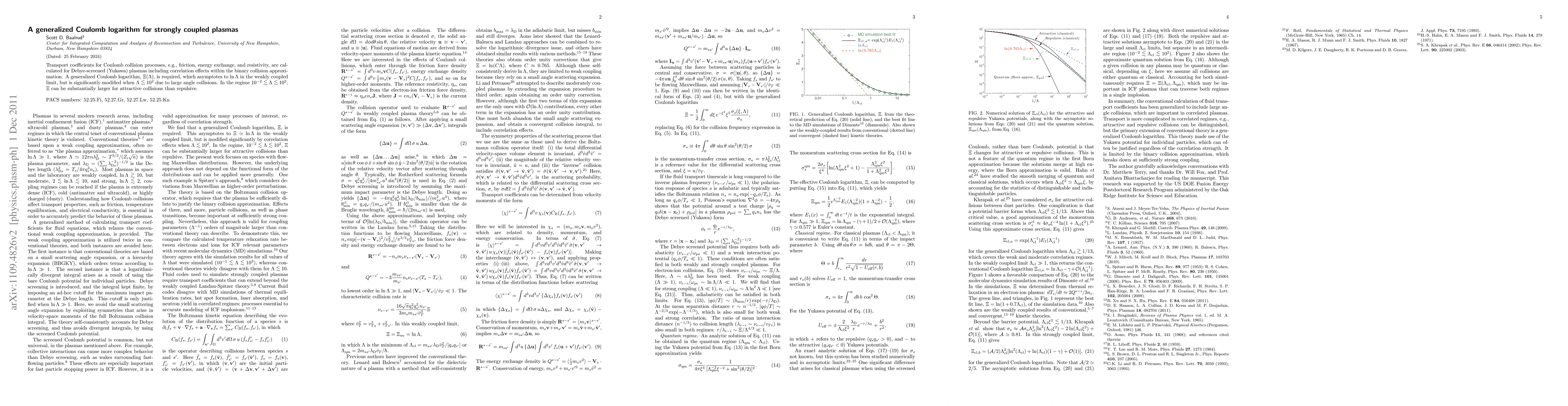 The development of a generalised Coulomb logarithm for describing the behavior of transport coefficients in correlated plasmas.