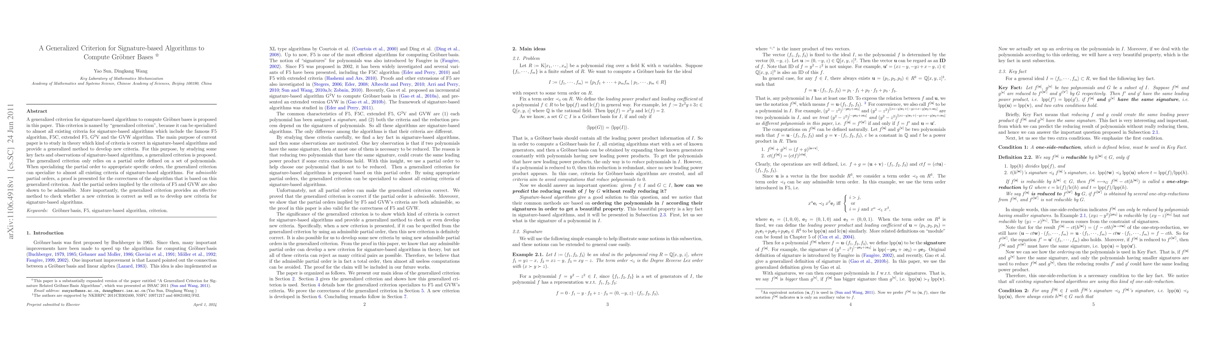 This paper proposes a generalized criterion for signature-based algorithms to compute Gröbner bases, which can specialize to existing criteria like F5 and GVW. It provides a theoretical framework for verifying the correctness of these algorithms based on admissible partial orders.