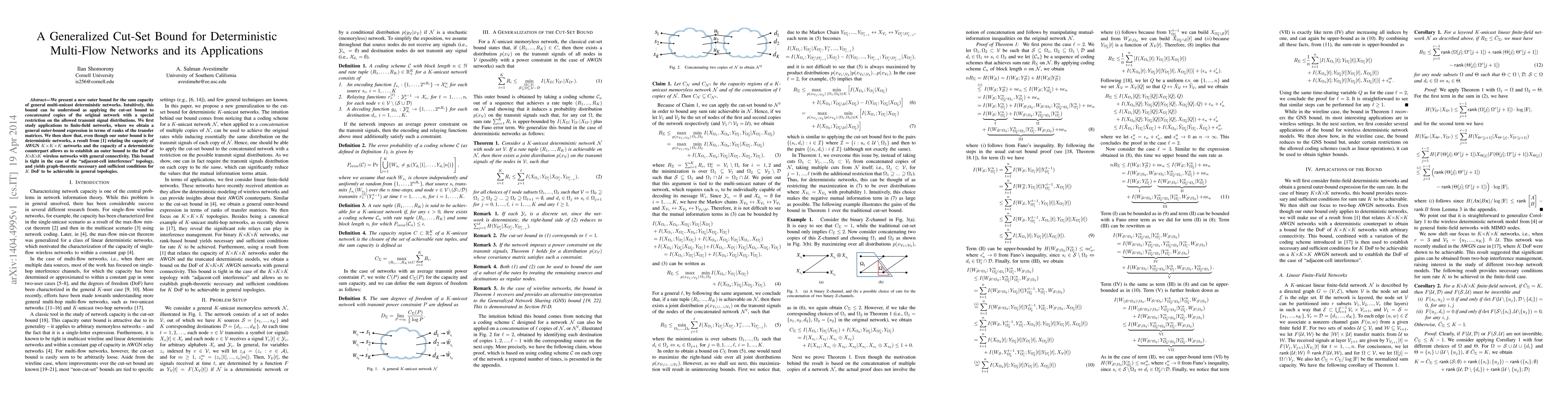 This paper introduces a generalized cut-set bound for the sum capacity of deterministic multi-flow networks, applying it to finite-field networks and deriving outer bounds in terms of transfer matrix ranks. It extends the bound to wireless KxKxK networks, showing it is tight for adjacent-cell interference and providing necessary and sufficient conditions for K degrees of freedom in general topologies.