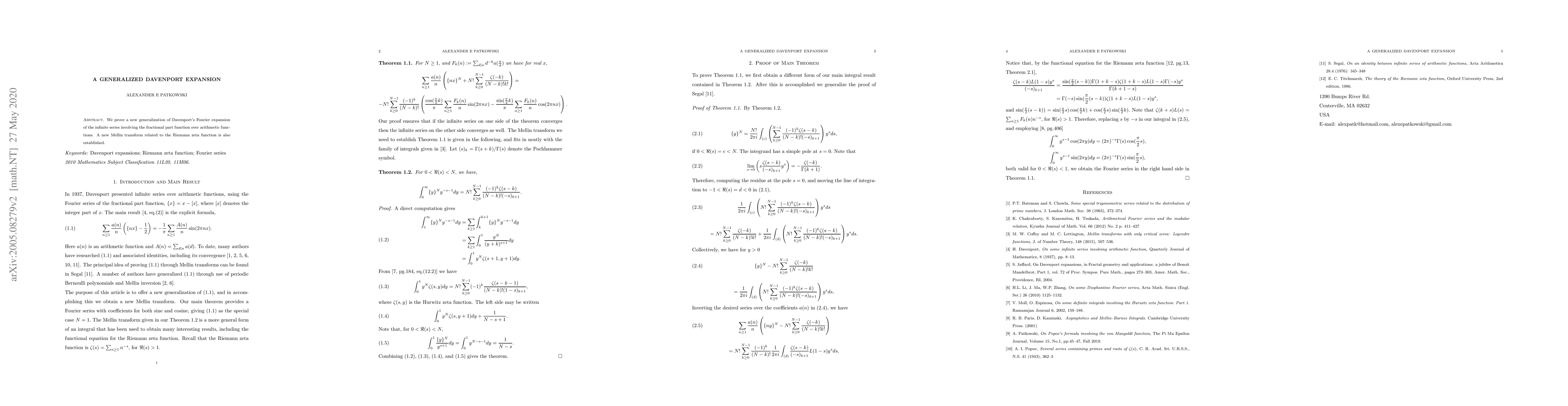 We prove a new generalization of Davenport's Fourier expansion of the infinite series involving the fractional part function over arithmetic functions. A new Mellin transform related to the Riemann zeta function is also established.