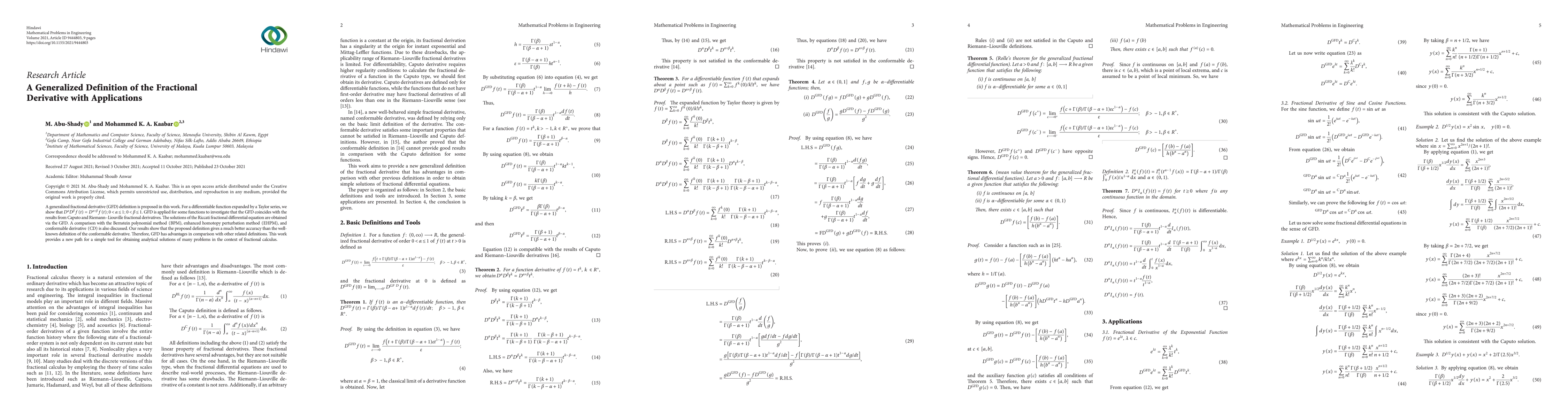 A new definition of fractional derivative is proposed, which offers better accuracy than existing definitions for solving certain problems in fractional calculus.