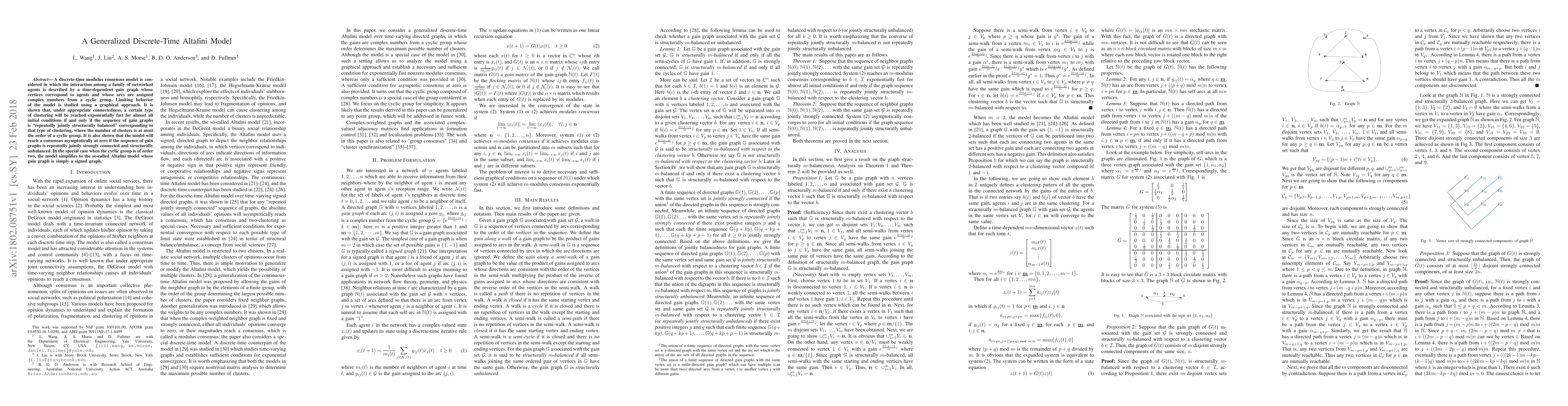 A discrete-time modulus consensus model is considered in which the interaction among a family of networked agents is described by a time-dependent gain graph whose vertices correspond to agents and whose arcs are assigned complex numbers from a cyclic group. Limiting behavior of the model is studied using a graphical approach. It is shown that, under appropriate connectedness, a certain type of clustering will be reached exponentially fast for almost all initial conditions if and only if the sequence of gain graphs is "repeatedly jointly structurally balanced" corresponding to that type of clustering, where the number of clusters is at most the order of a cyclic group. It is also shown that the model will reach a consensus asymptotically at zero if the sequence of gain graphs is repeatedly jointly strongly connected and structurally unbalanced. In the special case when the cyclic group is of order two, the model simplifies to the so-called Altafini model whose gain graph is simply a signed graph.