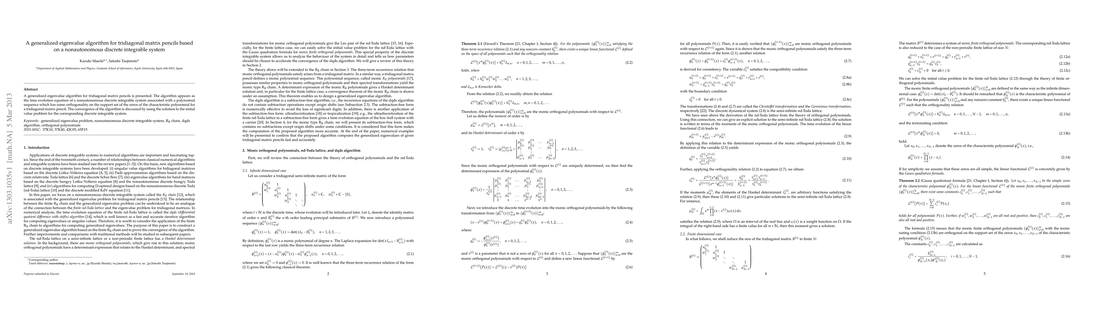 This paper introduces a generalized eigenvalue algorithm for tridiagonal matrix pencils derived from a nonautonomous discrete integrable system. The algorithm's convergence is analyzed through the solution of the initial value problem for the associated discrete integrable system.