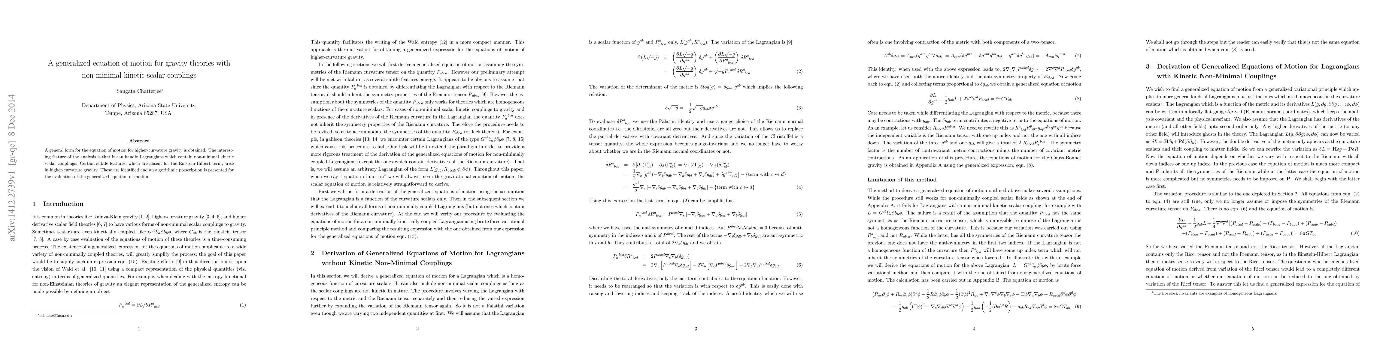A general form for the equation of motion for higher-curvature gravity is obtained. The interesting feature of the analysis is that it can handle Lagrangians which contain non-minimal kinetic scalar couplings. Certain subtle features, which are absent for the Einstein-Hilbert term, arise in higher-curvature gravity. These are identified and an algorithmic prescription is presented for the evaluation of the generalized equation of motion.