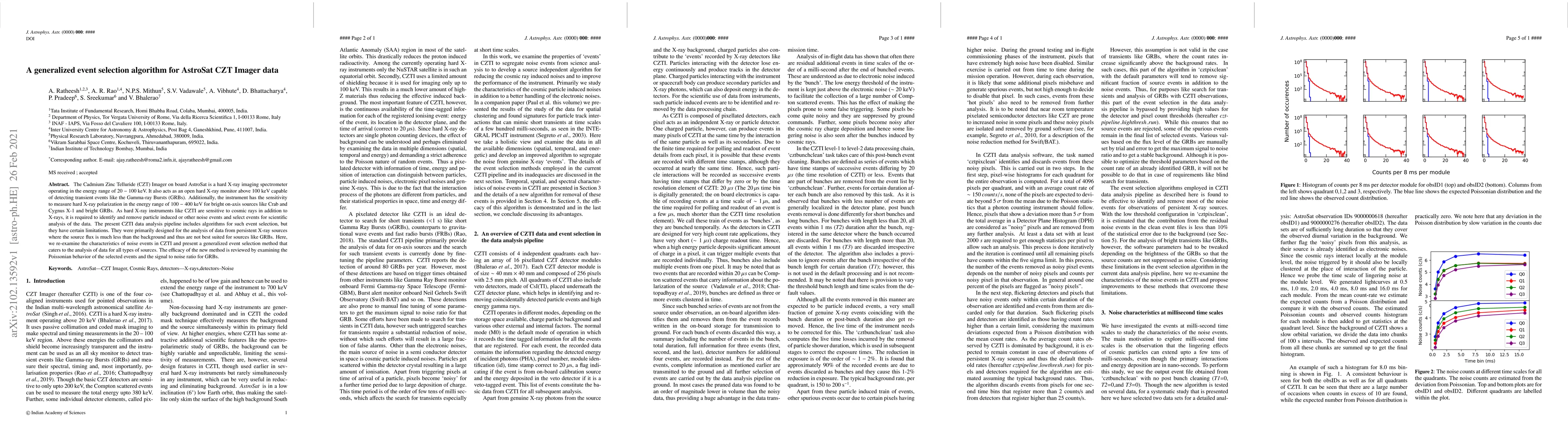 This paper introduces a generalized event selection algorithm for the AstroSat CZT Imager, addressing limitations in existing methods for analyzing transient events like Gamma-ray Bursts. The new method aims to improve the detection and analysis of both persistent and transient X-ray sources by effectively removing noise events and enhancing the signal-to-noise ratio.