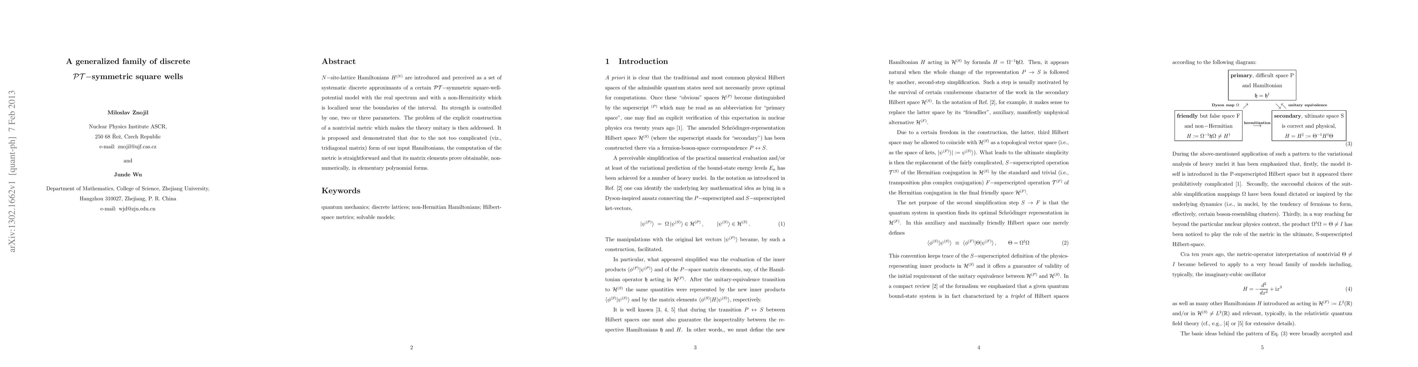 This paper introduces N-site-lattice Hamiltonians as discrete approximants of a PT-symmetric square-well potential, with non-Hermiticity localized near boundaries. It proposes a straightforward method for constructing a nontrivial metric to make the theory unitary, yielding matrix elements in elementary polynomial forms.