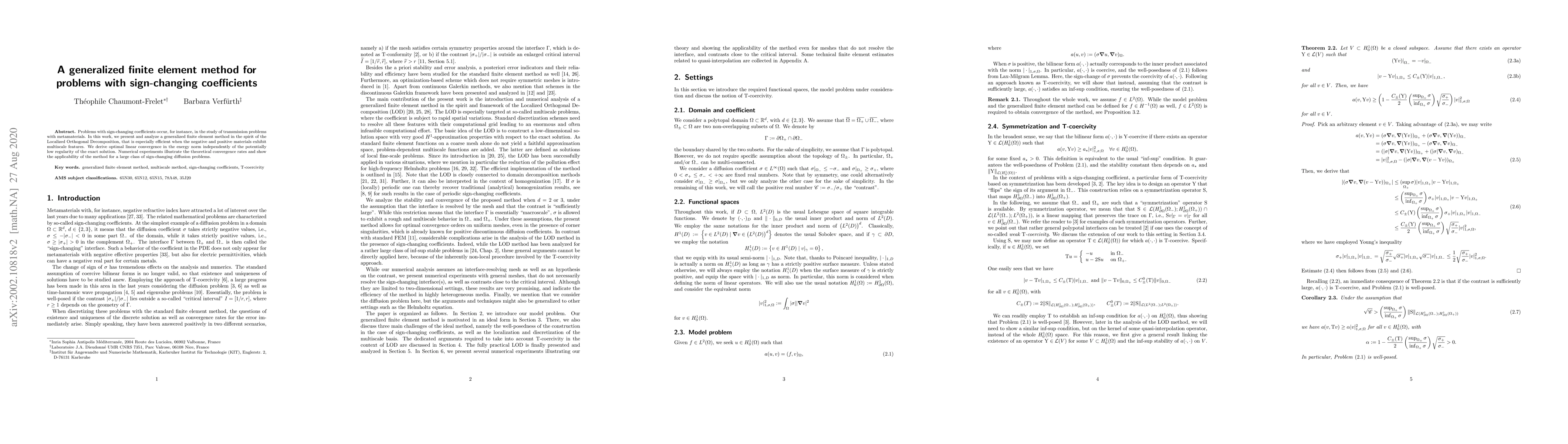 This paper introduces a generalized finite element method based on the Localized Orthogonal Decomposition to efficiently solve problems with sign-changing coefficients, such as those found in metamaterials. The method achieves optimal linear convergence regardless of the solution's regularity, as demonstrated by numerical experiments.