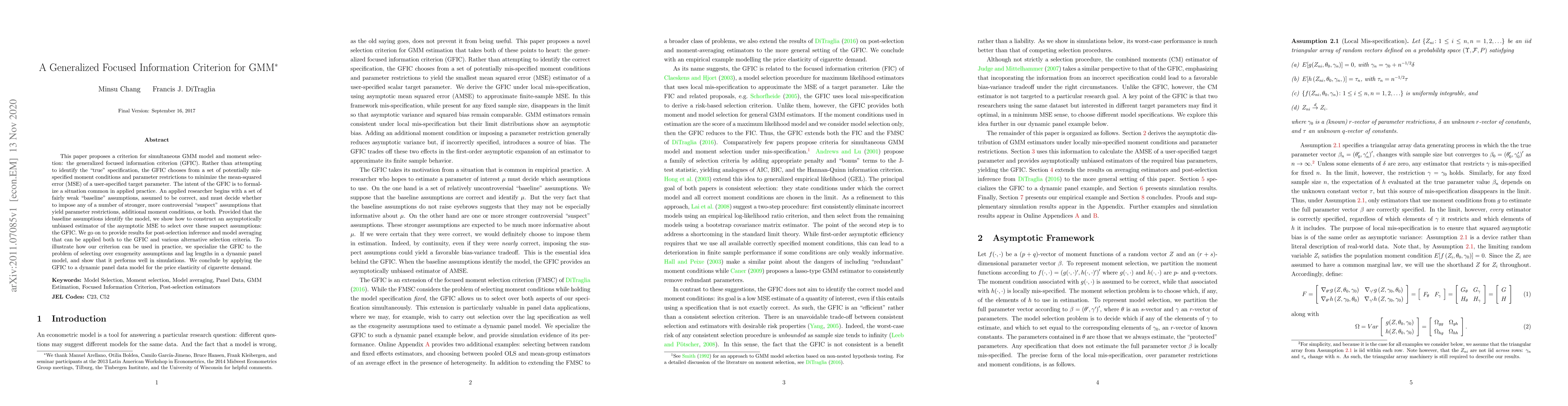 This paper introduces the generalized focused information criterion (GFIC) for selecting optimal moment conditions and parameter restrictions in GMM models, aiming to minimize the mean-squared error of a target parameter. The GFIC is applied to dynamic panel models and shown to perform well in simulations and real-world data analysis.