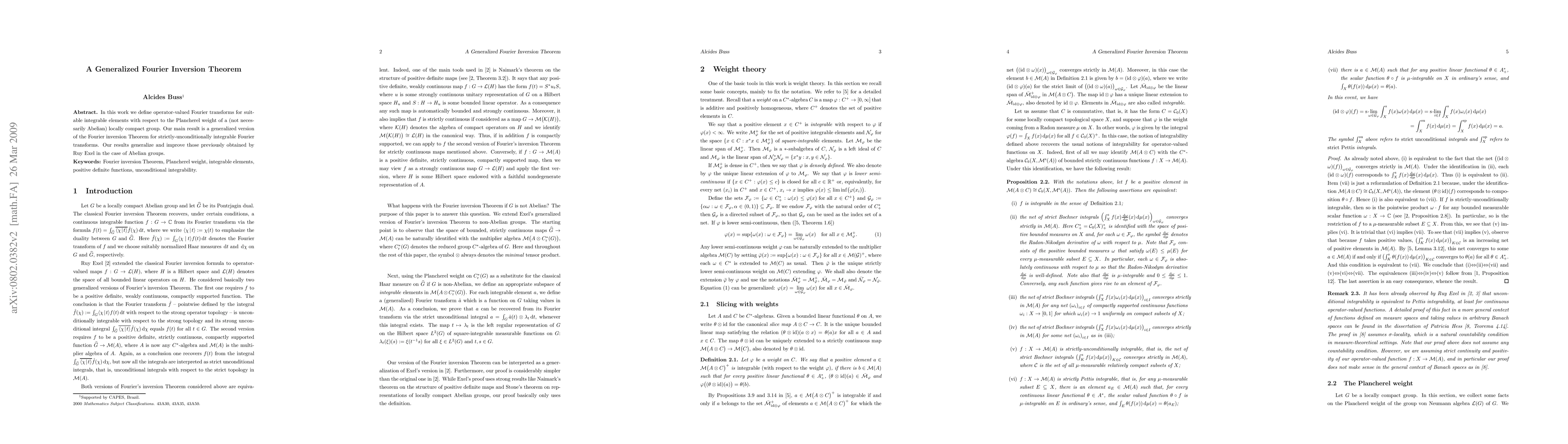 This research introduces a generalized Fourier transform for non-Abelian groups, extending previous work by Ruy Exel for Abelian groups. It presents a generalized Fourier inversion theorem for strictly-unconditionally integrable transforms, improving existing results.