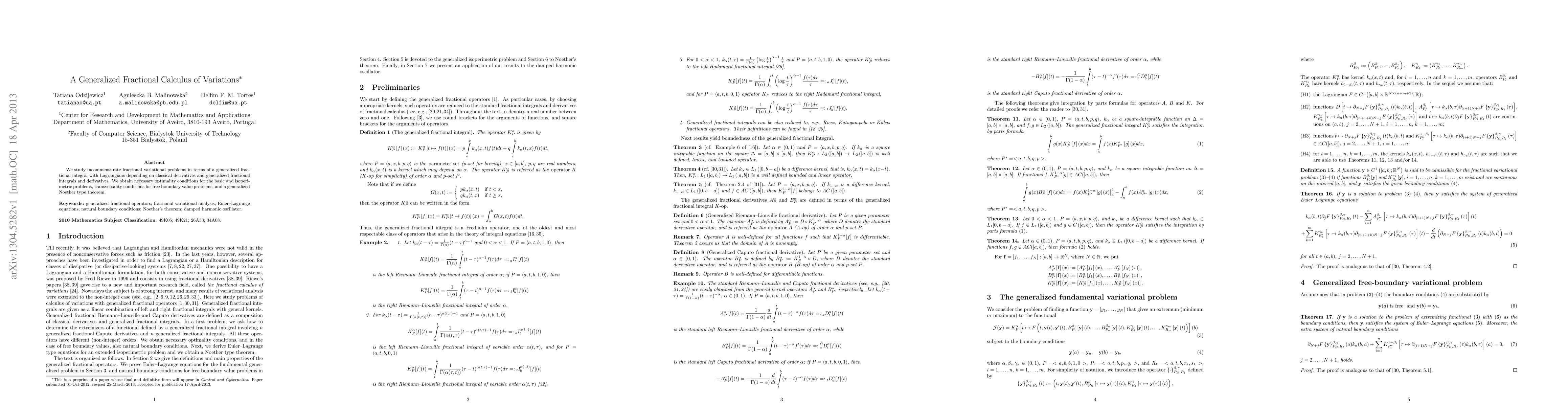 This paper explores incommensurate fractional variational problems using a generalized fractional integral, deriving necessary optimality conditions, transversality conditions, and a generalized Noether theorem for problems involving classical and fractional derivatives.