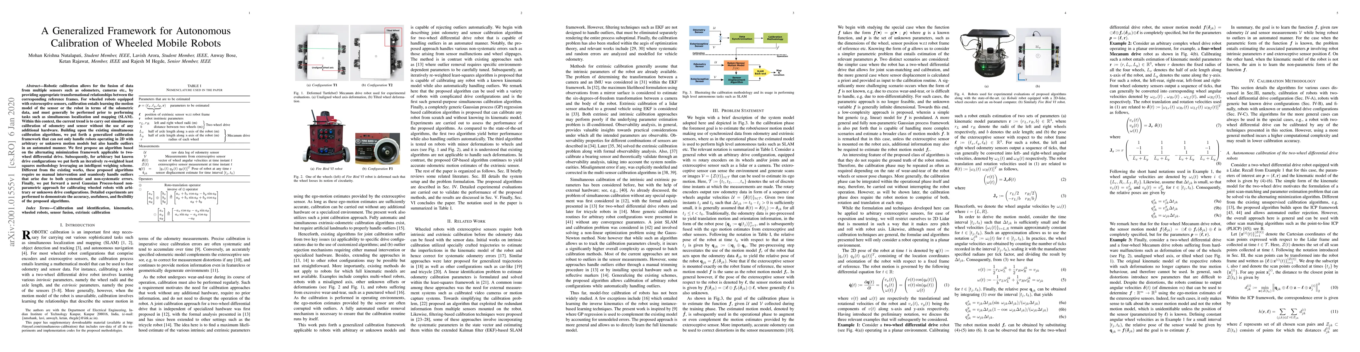 This paper presents a generalized framework for autonomous calibration of wheeled mobile robots, focusing on simultaneous calibration of odometry and exteroceptive sensors without additional hardware. The proposed algorithms include an alternating minimization method for two-wheel differential drives, an iteratively re-weighted least squares approach for known drive configurations, and a Gaussian Process-based non-parametric method for arbitrary or unknown configurations, all designed to handle outliers automatically.