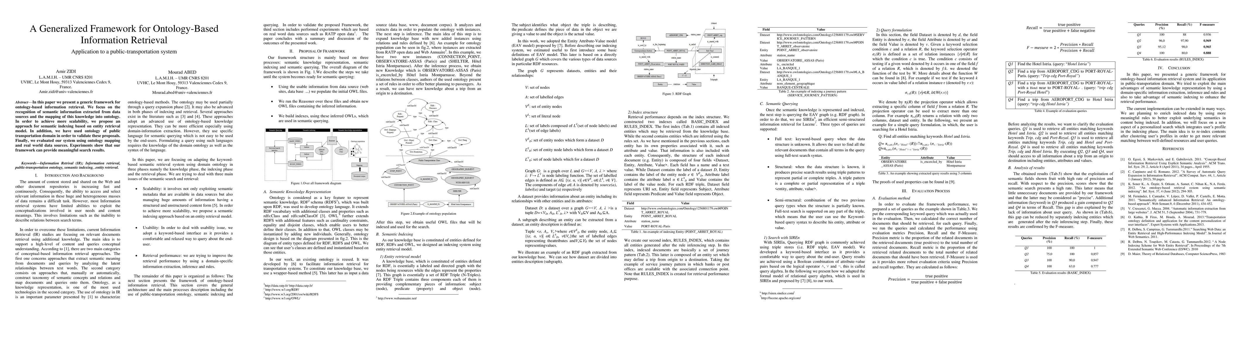 This paper introduces a scalable ontology-based information retrieval framework, emphasizing semantic indexing and entity retrieval. The approach is validated using a public transportation domain ontology, demonstrating effective mapping and retrieval of semantic information.