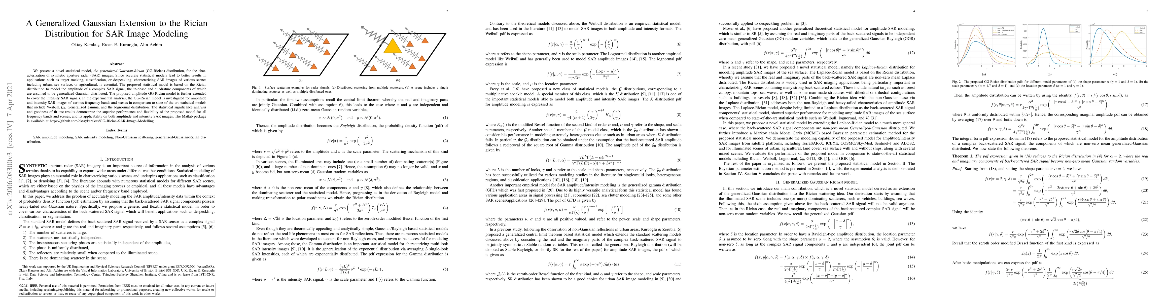 This paper introduces the generalized-Gaussian-Rician (GG-Rician) distribution for modeling synthetic aperture radar (SAR) images, extending the Rician distribution to better characterize various SAR scenes. The proposed model shows superior performance over existing models in applications like target tracking and classification, as demonstrated through statistical significance analysis.