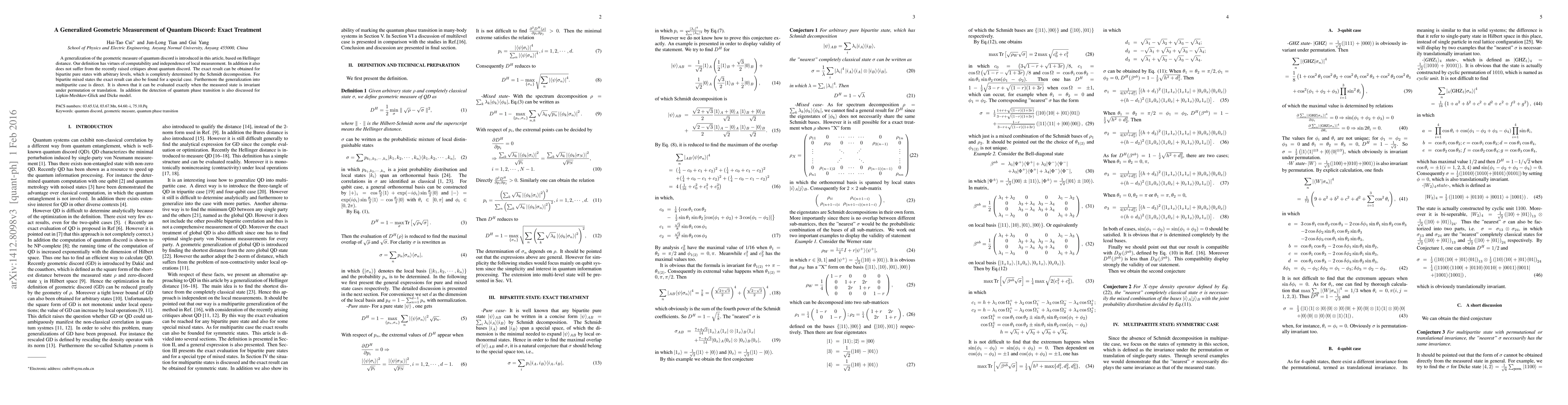 A generalization of the geometric measure of quantum discord is introduced in this article, based on Hellinger distance. Our definition has virtues of computability and independence of local measurement. In addition it also does not suffer from the recently raised critiques about quantum discord. The exact result can be obtained for bipartite pure states with arbitrary levels, which is completely determined by the Schmidt decomposition. For bipartite mixed states the exact result can also be found for a special case. Furthermore the generalization into multipartite case is direct. It is shown that it can be evaluated exactly when the measured state is invariant under permutation or translation. In addition the detection of quantum phase transition is also discussed for Lipkin-Meshkov-Glick and Dicke model.