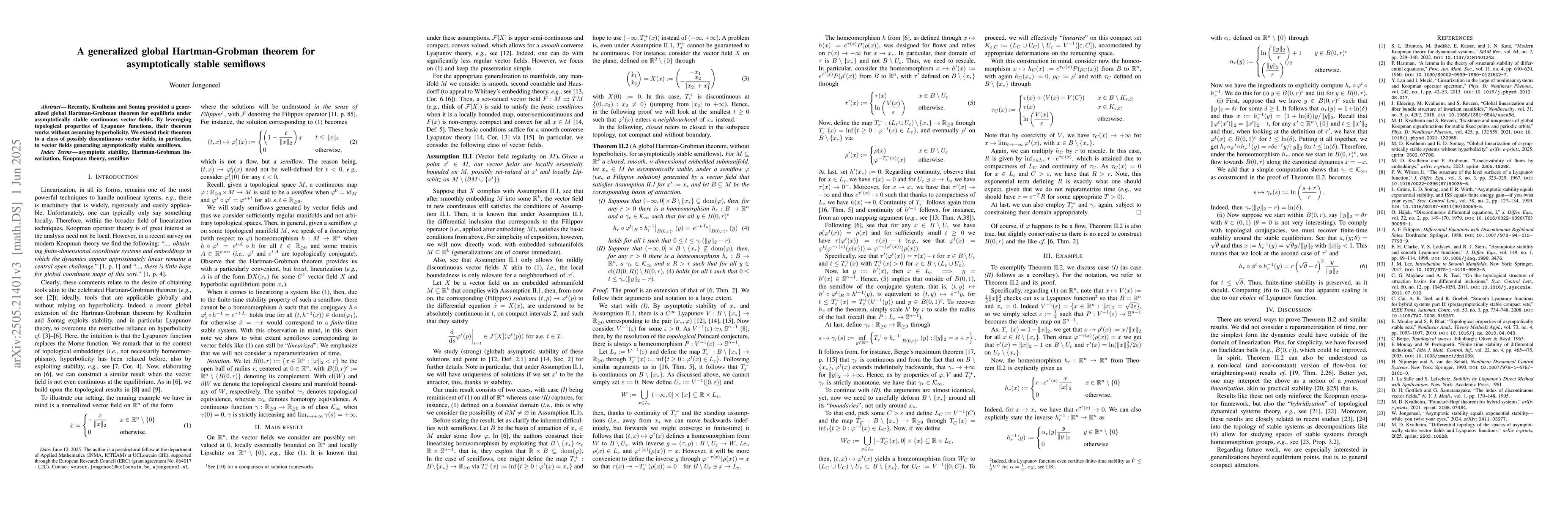 The paper presents a significant theoretical extension, providing a global Hartman-Grobman theorem for asymptotically stable semiflows, which enhances the existing body of knowledge in dynamical systems theory.