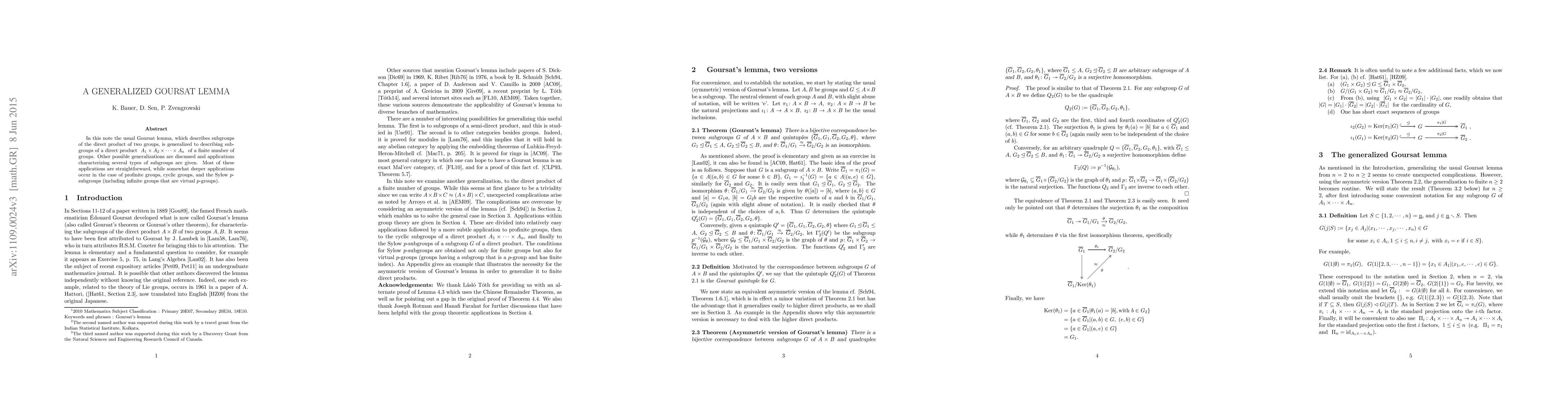 In this note the usual Goursat lemma, which describes subgroups of the direct product of two groups, is generalized to describing subgroups of a direct product $A_1\times A_2 \times...\times A_n$ of a finite number of groups. Other possible generalizations are discussed and applications characterizing several types of subgroups are given. Most of these applications are straightforward, while somewhat deeper applications occur in the case of profinite groups, cyclic groups, and the Sylow $p$-subgroups (including infinite groups that are virtual $p$-groups).