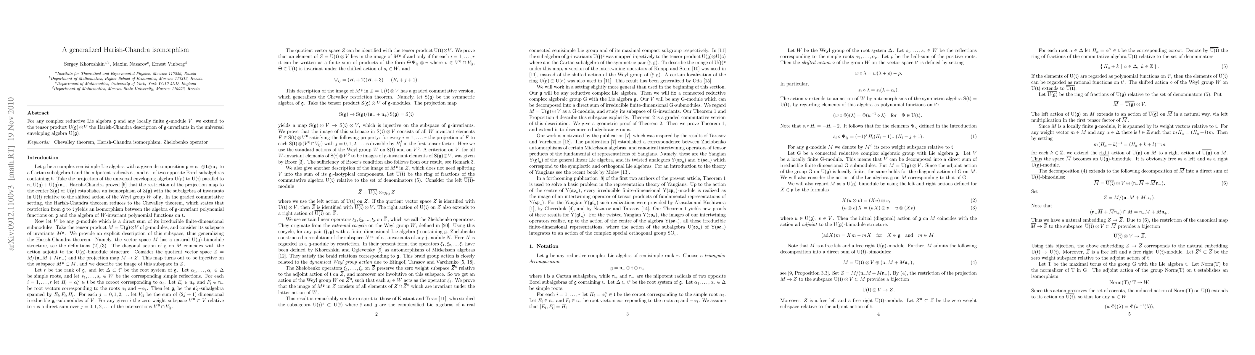Summary: This paper extends the Harish-Chandra isomorphism to the tensor product of a complex reductive Lie algebra's universal enveloping algebra with any locally finite module, providing a generalized description of g-invariants. The result enhances the understanding of module structures in representation theory.