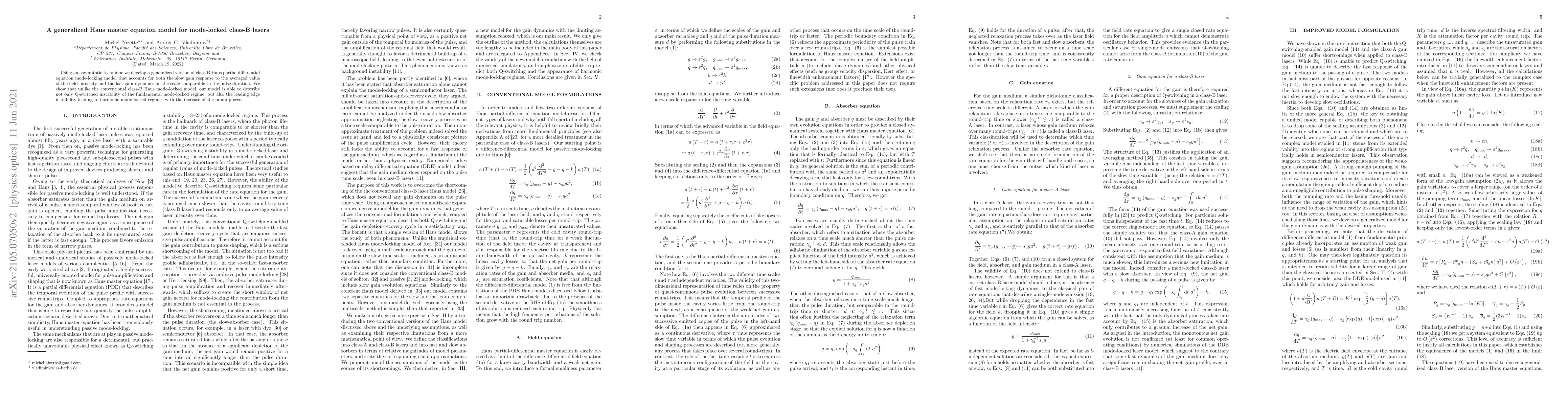 This paper proposes a generalized Haus master equation model for class-B lasers, incorporating both slow gain dynamics and fast gain responses, which can describe Q-switched and harmonic mode-locked regimes beyond conventional models. The model captures instabilities leading to different mode-locking behaviors with varying pump power.