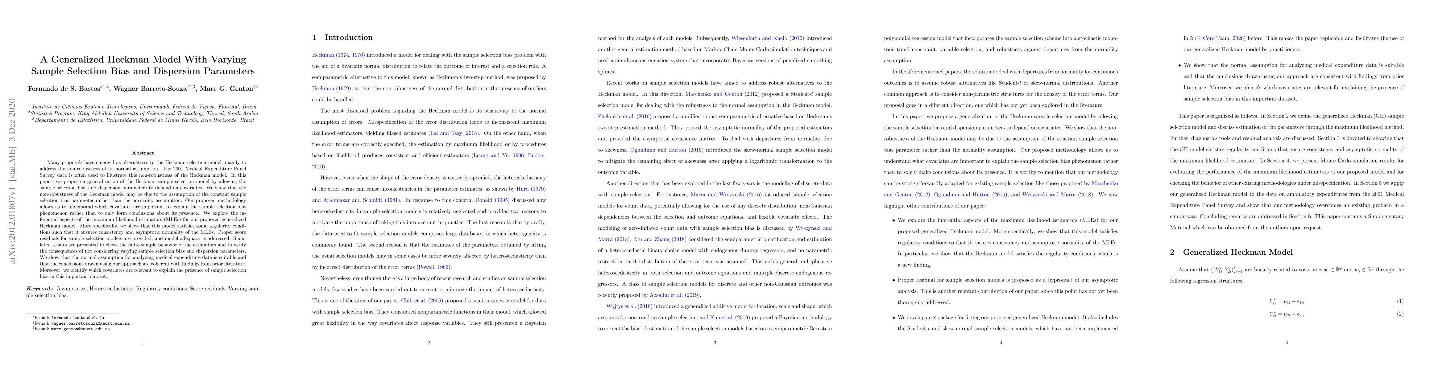 Researchers propose a generalized Heckman model that accounts for varying sample selection bias and dispersion parameters, addressing non-robustness of the original model, and demonstrate its consistency and accuracy in analyzing medical expenditure data.