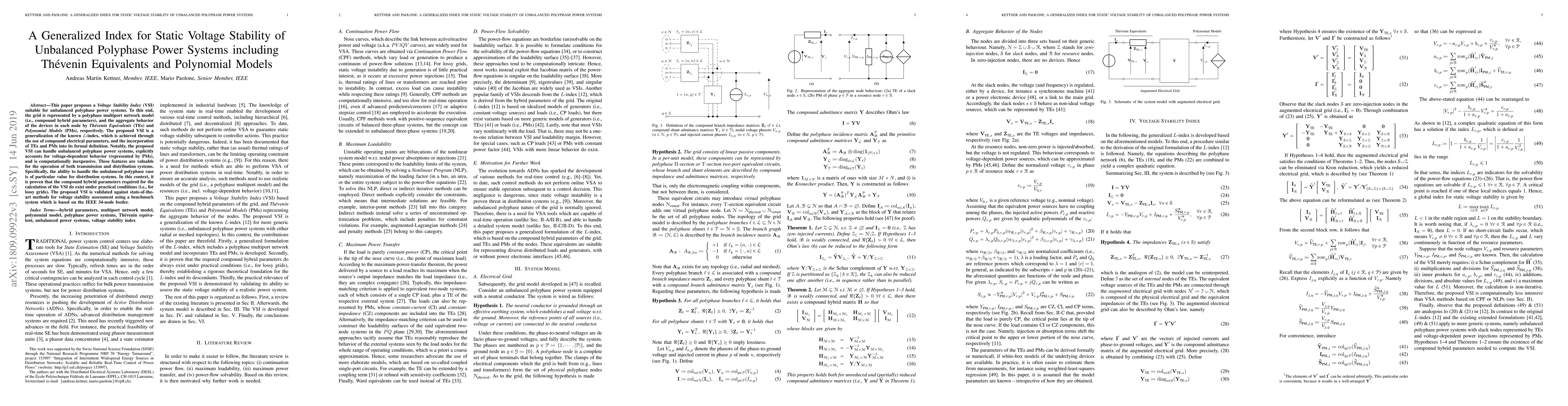 A new Voltage Stability Index (VSI) is proposed for unbalanced polyphase power systems, handling voltage-dependent behavior and computational efficiency, with successful validation against state-of-the-art methods.