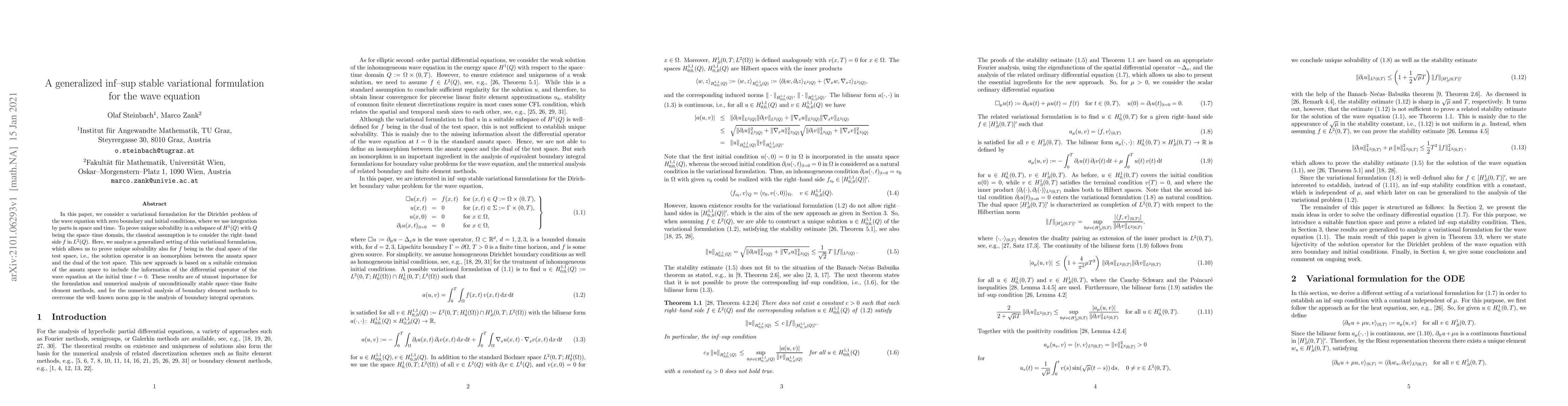 In this paper, we consider a variational formulation for the Dirichlet problem of the wave equation with zero boundary and initial conditions, where we use integration by parts in space and time. To prove unique solvability in a subspace of $H^1(Q$) with $Q$ being the space-time domain, the classical assumption is to consider the right-hand side $f$ in $L^2(Q)$. Here, we analyze a generalized setting of this variational formulation, which allows us to prove unique solvability also for $f$ being in the dual space of the test space, i.e., the solution operator is an isomorphism between the ansatz space and the dual of the test space. This new approach is based on a suitable extension of the ansatz space to include the information of the differential operator of the wave equation at the initial time $t=0$. These results are of utmost importance for the formulation and numerical analysis of unconditionally stable space-time finite element methods, and for the numerical analysis of boundary element methods to overcome the well-known norm gap in the analysis of boundary integral operators.