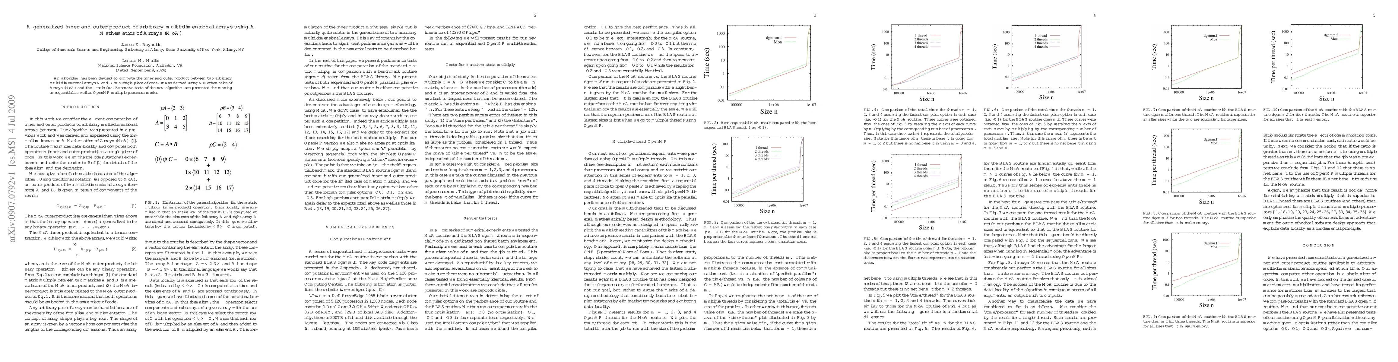 A new algorithm uses A Mathematics of Arrays (MoA) to compute inner and outer product between two arbitrary multi-dimensional arrays in a single piece of code, with promising results in sequential and parallel processing modes.