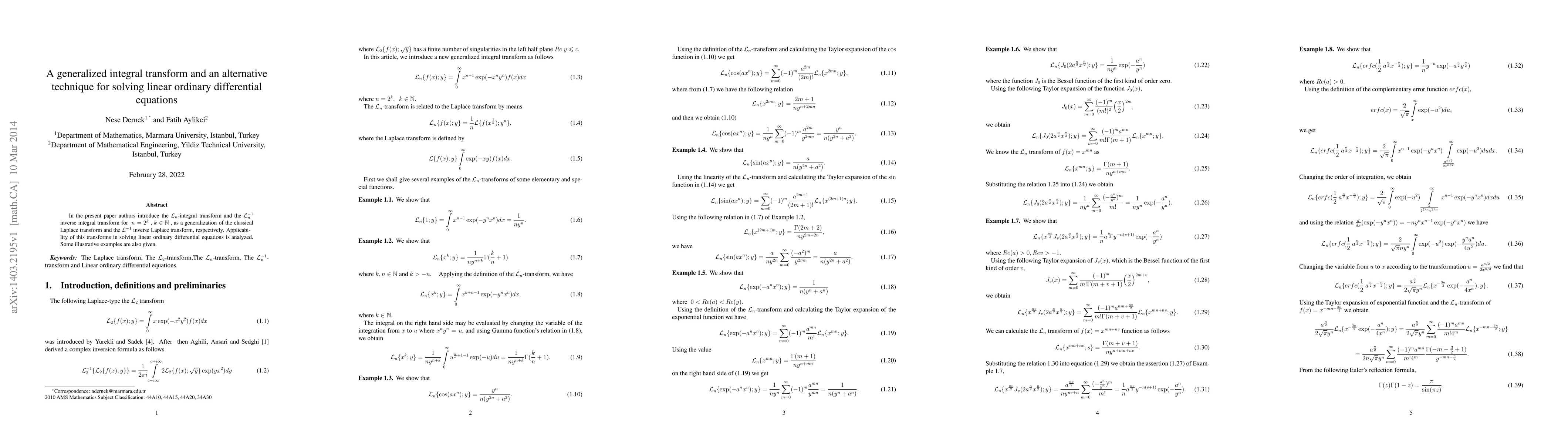 This paper introduces the L_n-integral transform, a generalization of the Laplace transform, and its inverse for solving linear ordinary differential equations. The authors demonstrate its applicability through illustrative examples.