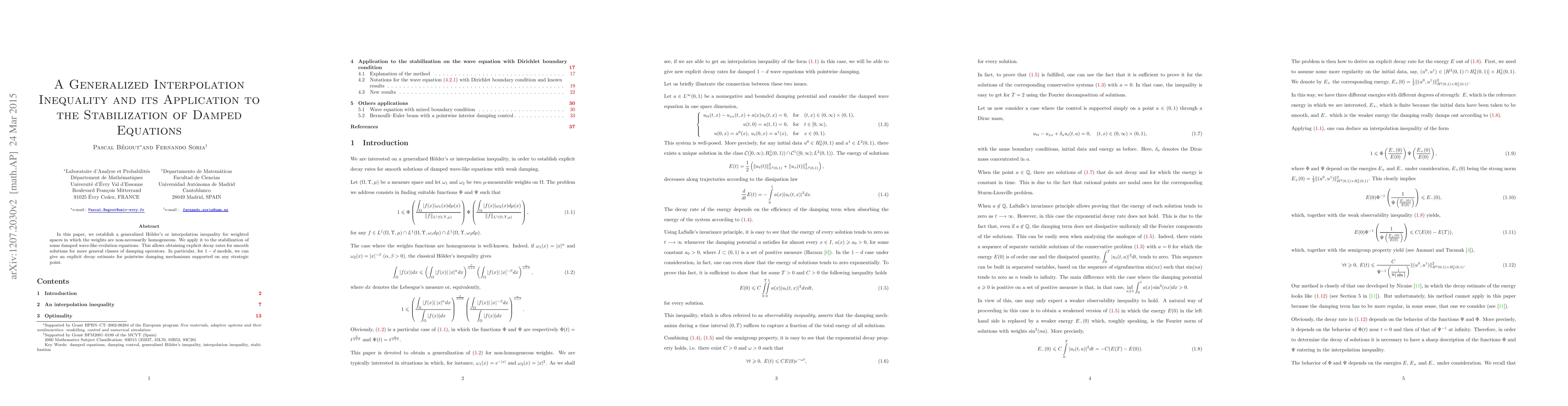 Researchers develop a generalized interpolation inequality to stabilize damped equations, providing explicit decay rates for smooth solutions in various damping models.