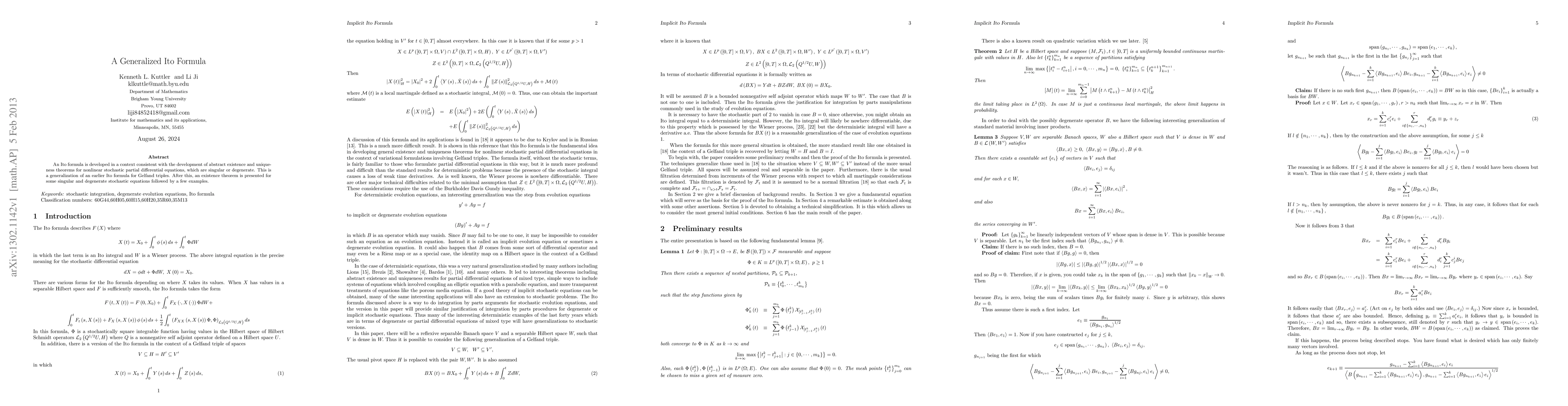 A generalized Ito formula is developed for nonlinear stochastic partial differential equations, allowing for existence theorems for singular and degenerate cases. This provides a foundation for studying complex stochastic systems.