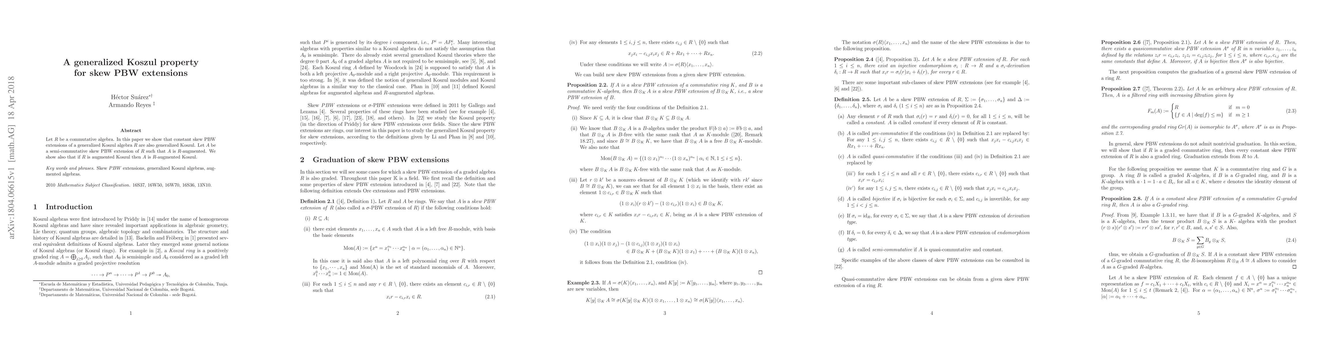 Let R be a commutative algebra. In this paper we show that constant skew PBW extensions of a generalized Koszul algebra R are also generalized Koszul. Let A be a semi-commutative skew PBW extension of R such that A is R-augmented. We show also that if R is augmented Koszul then A is R-augmented Koszul.