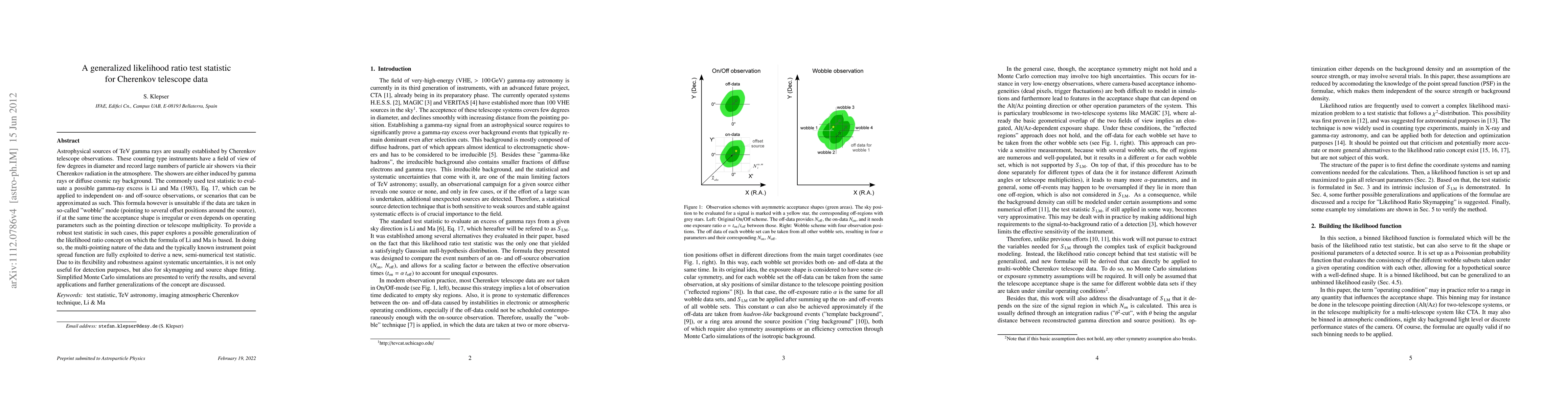 This paper proposes a generalized likelihood ratio test statistic for analyzing Cherenkov telescope data, especially for "wobble" mode observations where the acceptance shape varies. It aims to provide a robust method for detecting gamma-ray excesses, accounting for the multi-pointing nature and instrument point spread function, and is validated through Monte Carlo simulations.