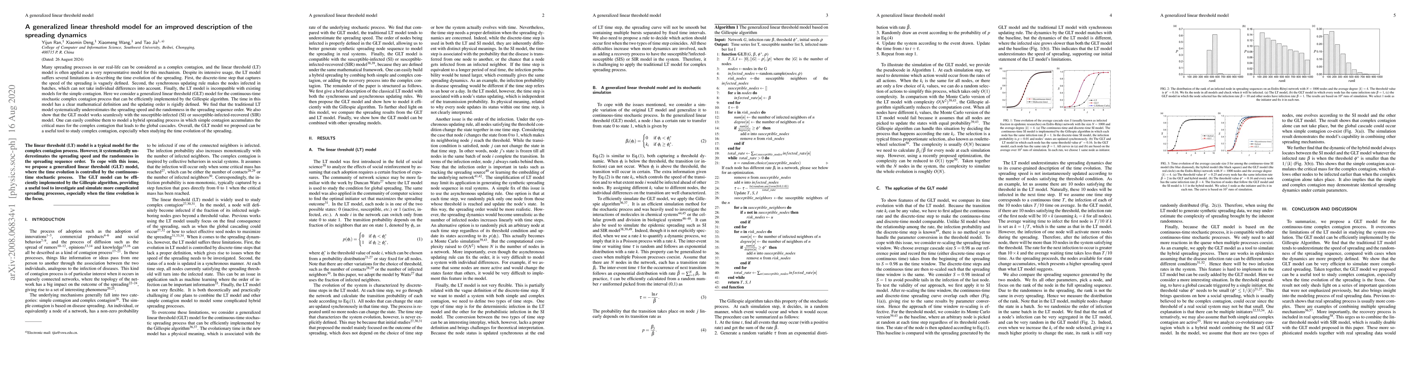 Many spreading processes in our real-life can be considered as a complex contagion, and the linear threshold (LT) model is often applied as a very representative model for this mechanism. Despite its intensive usage, the LT model suffers several limitations in describing the time evolution of the spreading. First, the discrete-time step that captures the speed of the spreading is vaguely defined. Second, the synchronous updating rule makes the nodes infected in batches, which can not take individual differences into account. Finally, the LT model is incompatible with existing models for the simple contagion. Here we consider a generalized linear threshold (GLT) model for the continuous-time stochastic complex contagion process that can be efficiently implemented by the Gillespie algorithm. The time in this model has a clear mathematical definition and the updating order is rigidly defined. We find that the traditional LT model systematically underestimates the spreading speed and the randomness in the spreading sequence order. We also show that the GLT model works seamlessly with the susceptible-infected (SI) or susceptible-infected-recovered (SIR) model. One can easily combine them to model a hybrid spreading process in which simple contagion accumulates the critical mass for the complex contagion that leads to the global cascades. Overall, the GLT model we proposed can be a useful tool to study complex contagion, especially when studying the time evolution of the spreading.