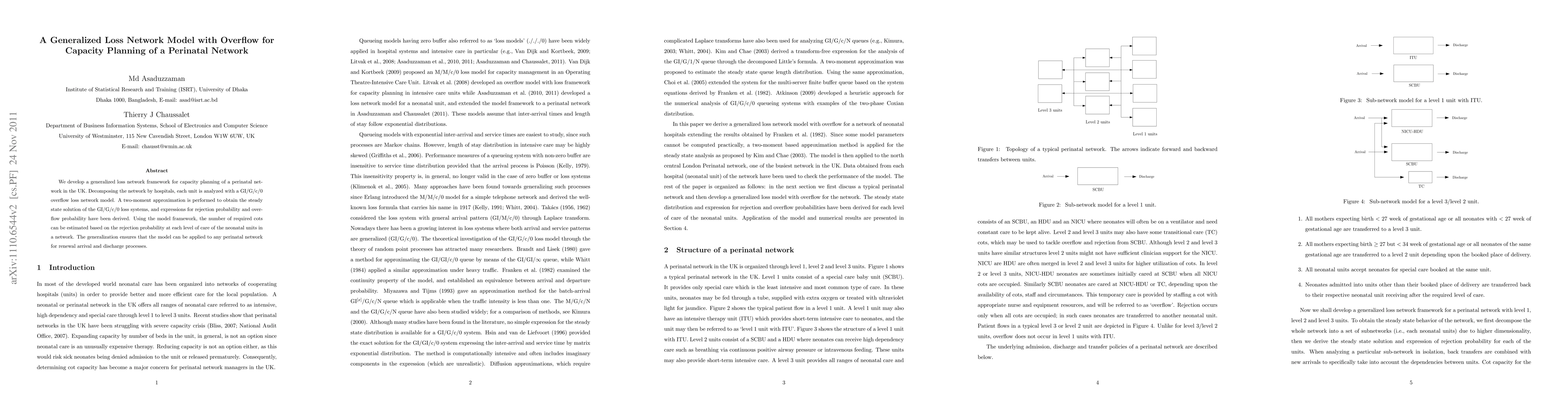 We develop a generalized loss network framework for capacity planning of a perinatal network in the UK. Decomposing the network by hospitals, each unit is analyzed with a GI/G/c/0 overflow loss network model. A two-moment approximation is performed to obtain the steady state solution of the GI/G/c/0 loss systems, and expressions for rejection probability and overflow probability have been derived. Using the model framework, the number of required cots can be estimated based on the rejection probability at each level of care of the neonatal units in a network. The generalization ensures that the model can be applied to any perinatal network for renewal arrival and discharge processes.