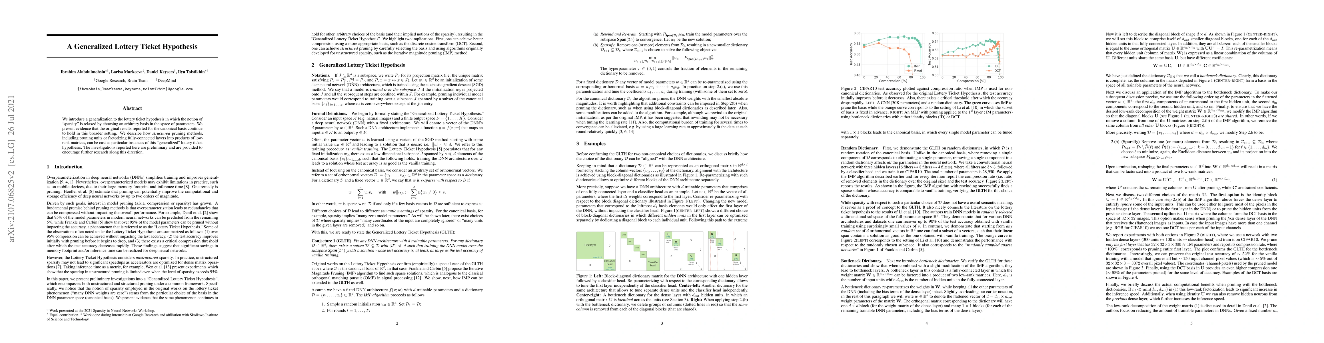 This paper generalizes the lottery ticket hypothesis by relaxing the notion of "sparsity" through an arbitrary basis in parameter space, demonstrating that original results still hold. It shows that structured pruning methods can be framed within this broader framework, though the findings are preliminary and aim to spur further research.