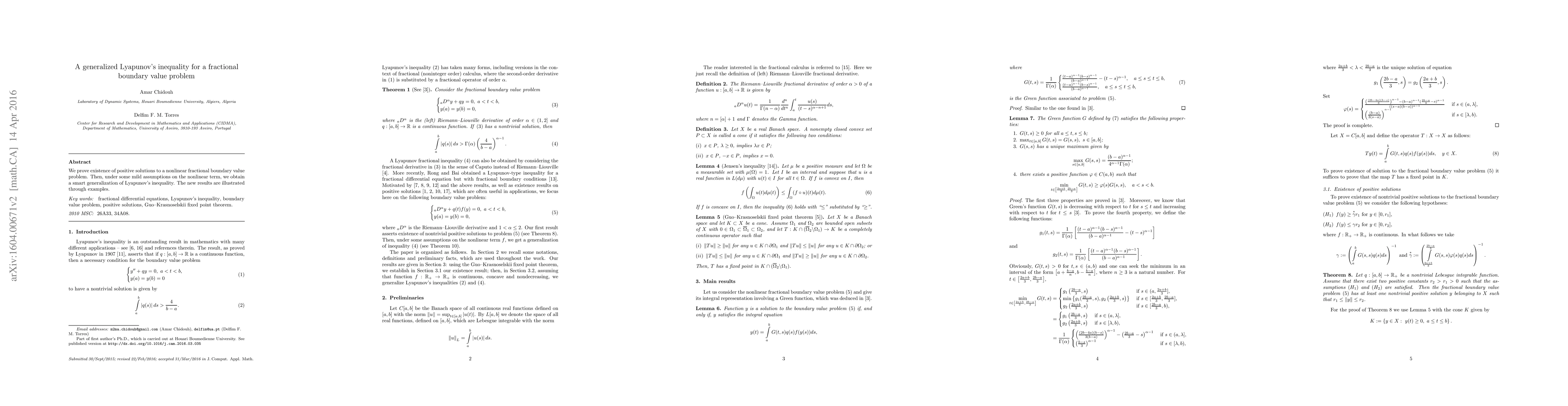 This paper proves the existence of positive solutions for a nonlinear fractional boundary value problem and generalizes Lyapunov's inequality under mild assumptions on the nonlinear term, demonstrating the results with examples.