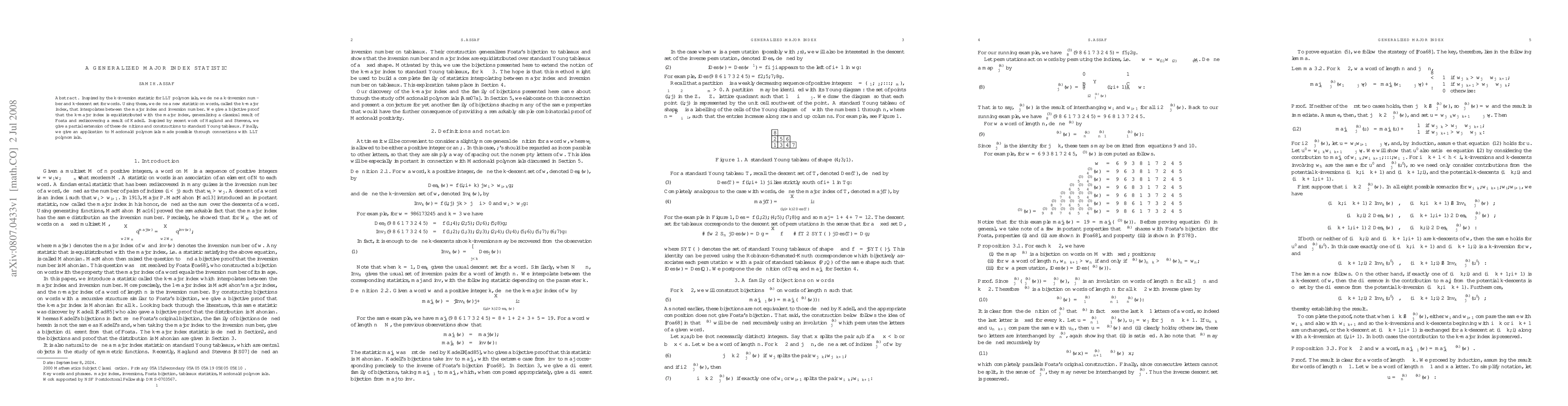 This paper introduces a new $k$-major index statistic on words, interpolating between the major index and inversion number, and proves its equidistribution with the major index. It extends the concept to standard Young tableaux and connects it to Macdonald polynomials via LLT polynomials.