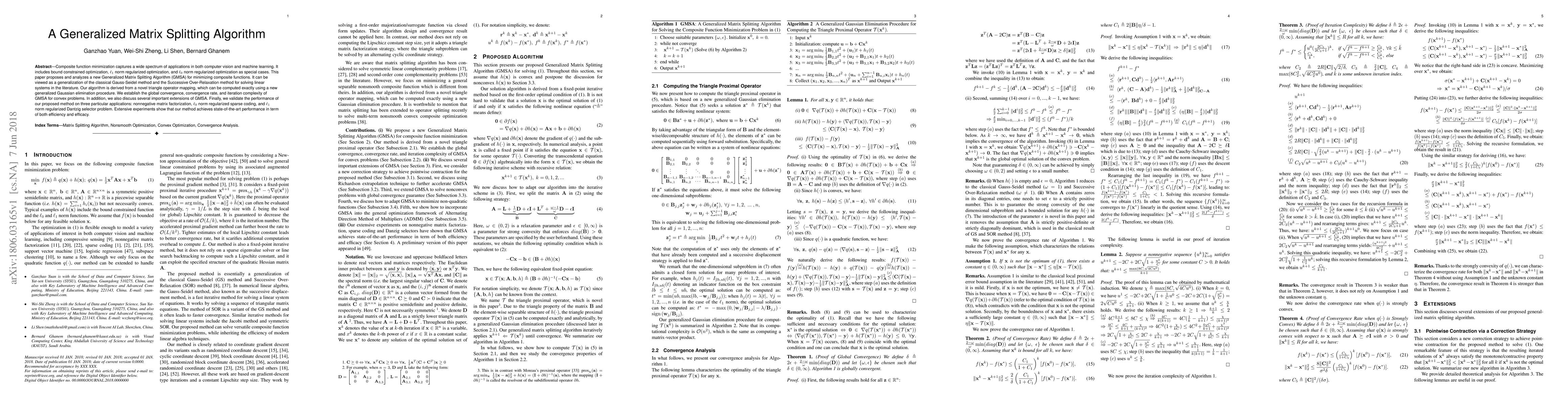 A new algorithm called Generalized Matrix Splitting Algorithm (GMSA) is proposed for minimizing composite functions, achieving state-of-the-art performance in various applications.