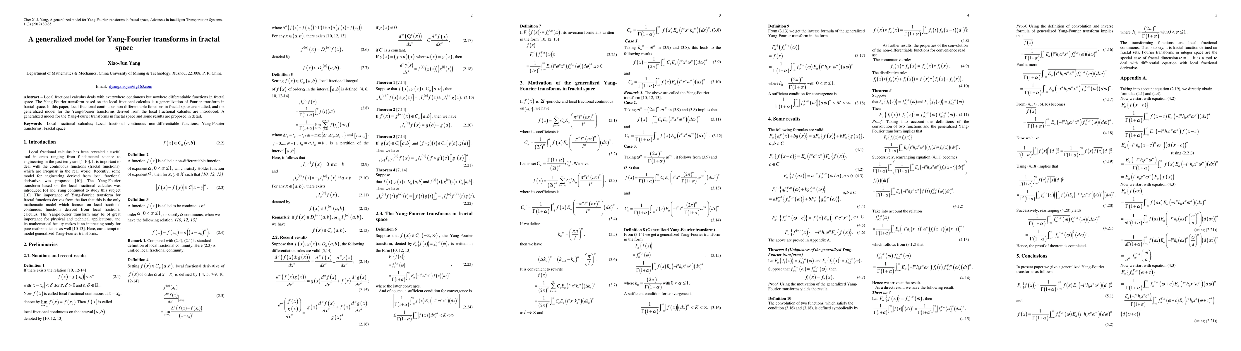 This paper introduces a generalized model for Yang-Fourier transforms based on local fractional calculus to handle non-differentiable functions in fractal space, providing detailed results and applications.