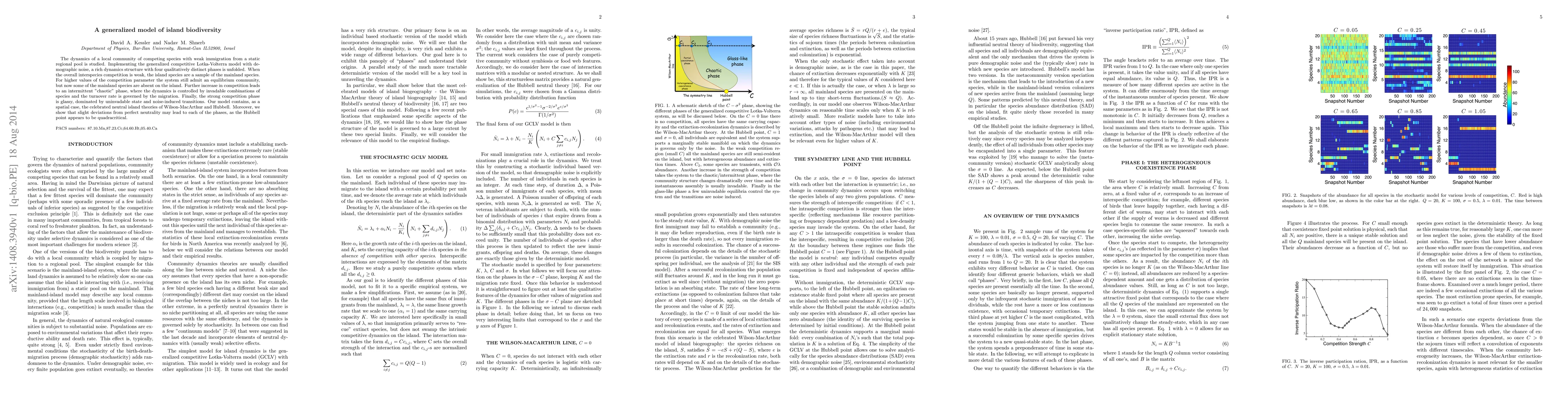 The dynamics of a local community of competing species with weak immigration from a static regional pool is studied. Implementing the generalized competitive Lotka-Volterra model with demographic noise, a rich dynamics structure with four qualitatively distinct phases is unfolded. When the overall interspecies competition is weak, the island species are a sample of the mainland species. For higher values of the competition parameter the system still admit an equilibrium community, but now some of the mainland species are absent on the island. Further increase in competition leads to an intermittent "chaotic" phase, where the dynamics is controlled by invadable combinations of species and the turnover rate is governed by the migration. Finally, the strong competition phase is glassy, dominated by uninvadable state and noise-induced transitions. Our model contains, as a spatial case, the celebrated neutral island theories of Wilson-MacArthur and Hubbell. Moreover, we show that slight deviations from perfect neutrality may lead to each of the phases, as the Hubbell point appears to be quadracritical.