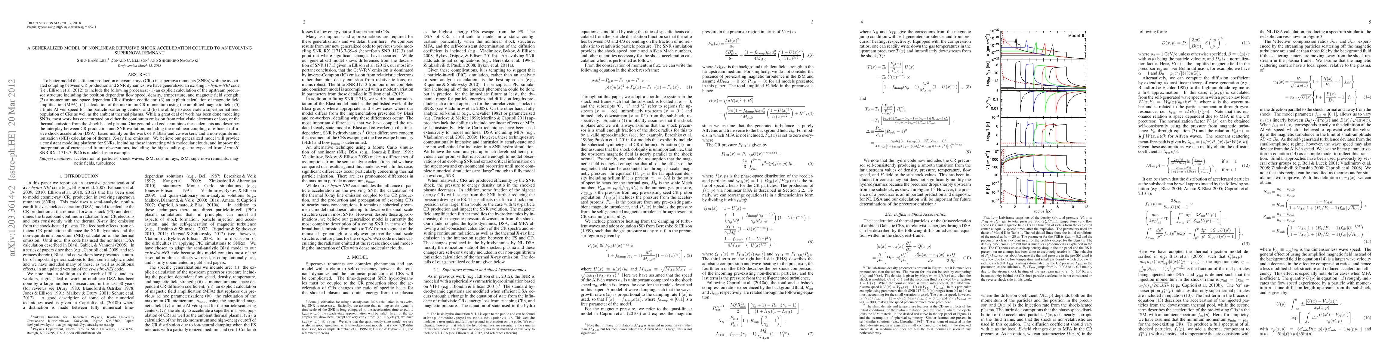 To better model the efficient production of cosmic rays (CRs) in supernova remnants (SNRs) with the associated coupling between CR production and SNR dynamics, we have generalized an existing cr-hydro-NEI code (i.e., Ellison et al. 2012) to include the following processes: (1) an explicit calculation of the upstream precursor structure including the position dependent flow speed, density, temperature, and magnetic field strength; (2) a momentum and space dependent CR diffusion coefficient; (3) an explicit calculation of magnetic field amplification (MFA); (4) calculation of the maximum CR momentum using the amplified magnetic field; (5) a finite Alfven speed for the particle scattering centers; and (6) the ability to accelerate a superthermal seed population of CRs as well as the ambient thermal plasma. While a great deal of work has been done modeling SNRs, most work has concentrated on either the continuum emission from relativistic electrons or ions, or the thermal emission from the shock heated plasma. Our generalized code combines these elements and describes the interplay between CR production and SNR evolution, including the nonlinear coupling of efficient diffusive shock acceleration (DSA), based mainly on the work of P. Blasi and co-workers, and a non-equilibrium ionization (NEI) calculation of thermal X-ray line emission. We believe our generalized model will provide a consistent modeling platform for SNRs, including those interacting with molecular clouds, and improve the interpretation of current and future observations, including the high-quality spectra expected from Astro-H. SNR RX J1713.7-3946 is modeled as an example.