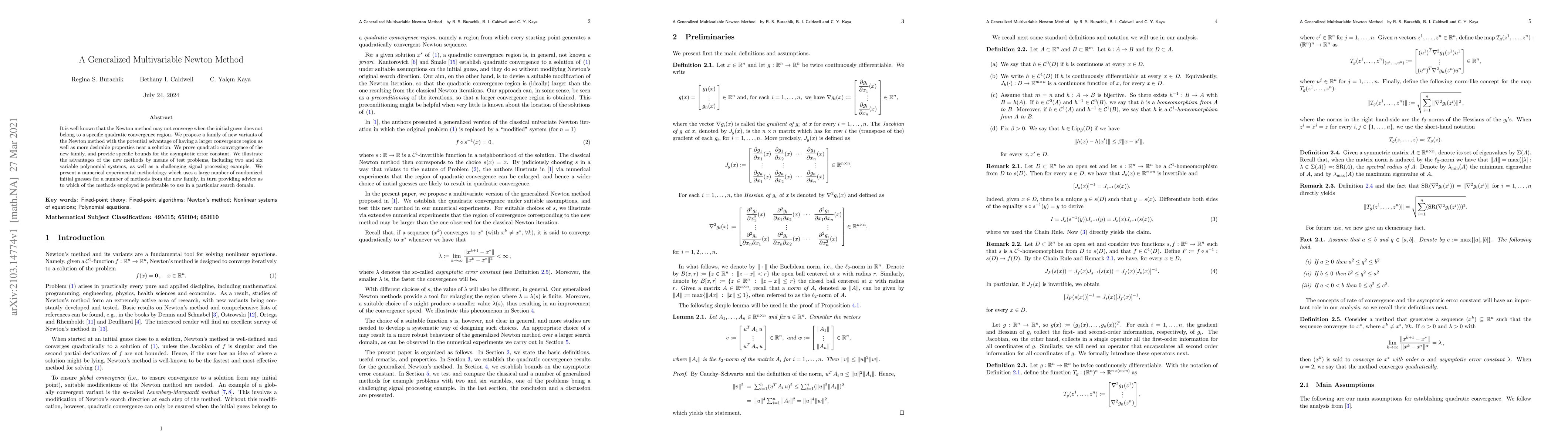 It is well known that the Newton method may not converge when the initial guess does not belong to a specific quadratic convergence region. We propose a family of new variants of the Newton method with the potential advantage of having a larger convergence region as well as more desirable properties near a solution. We prove quadratic convergence of the new family, and provide specific bounds for the asymptotic error constant. We illustrate the advantages of the new methods by means of test problems, including two and six variable polynomial systems, as well as a challenging signal processing example. We present a numerical experimental methodology which uses a large number of randomized initial guesses for a number of methods from the new family, in turn providing advice as to which of the methods employed is preferable to use in a particular search domain.