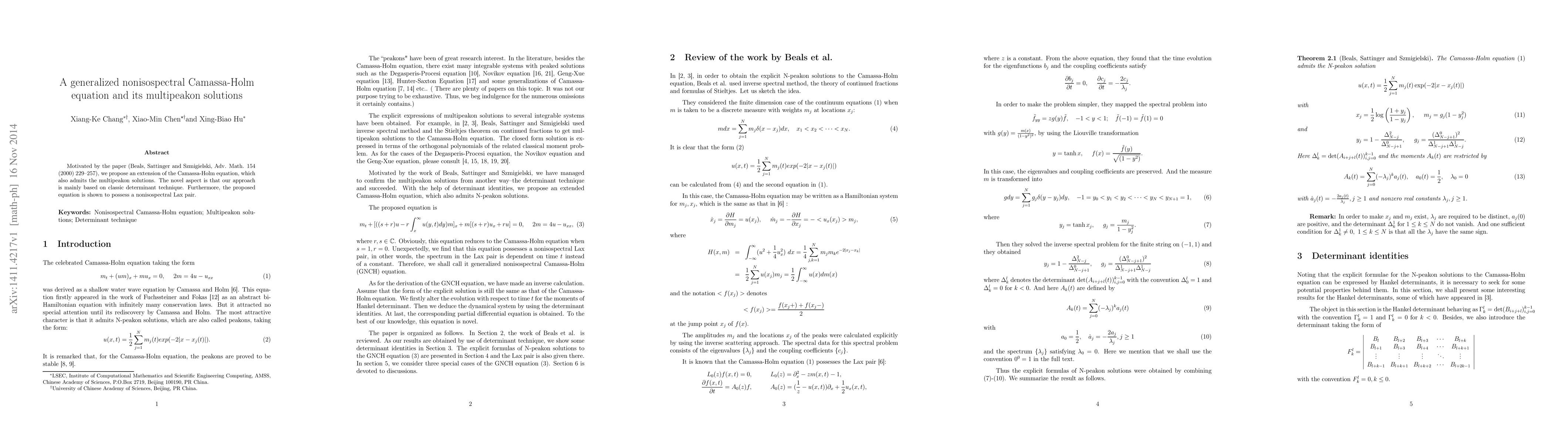 This paper extends the Camassa-Holm equation to a generalized form that supports multipeakon solutions, utilizing a classic determinant technique. The proposed equation also features a nonisospectral Lax pair, distinguishing it from traditional spectral approaches.