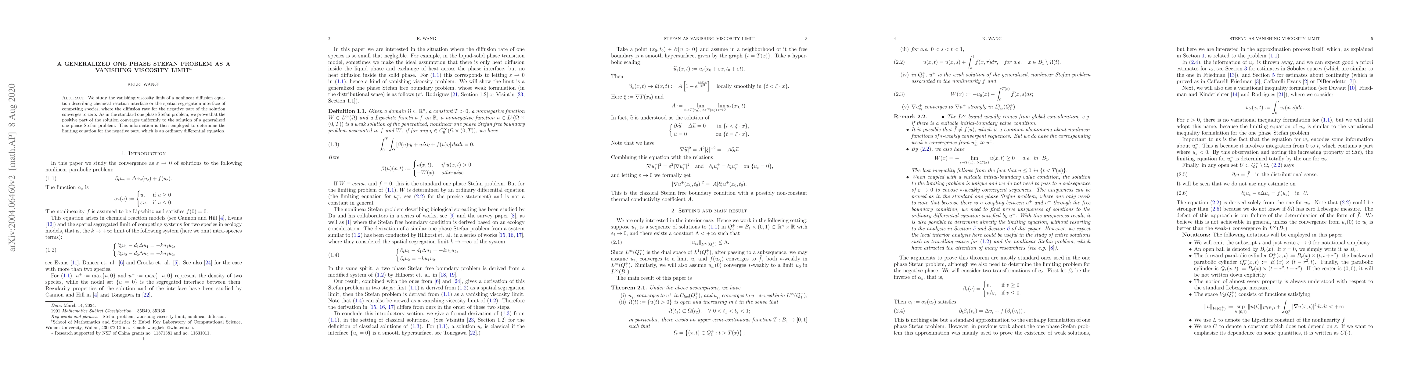 This paper explores the vanishing viscosity limit of a nonlinear diffusion equation, demonstrating that the positive part converges to a generalized one phase Stefan problem solution, while the negative part's limiting equation is an ordinary differential equation.