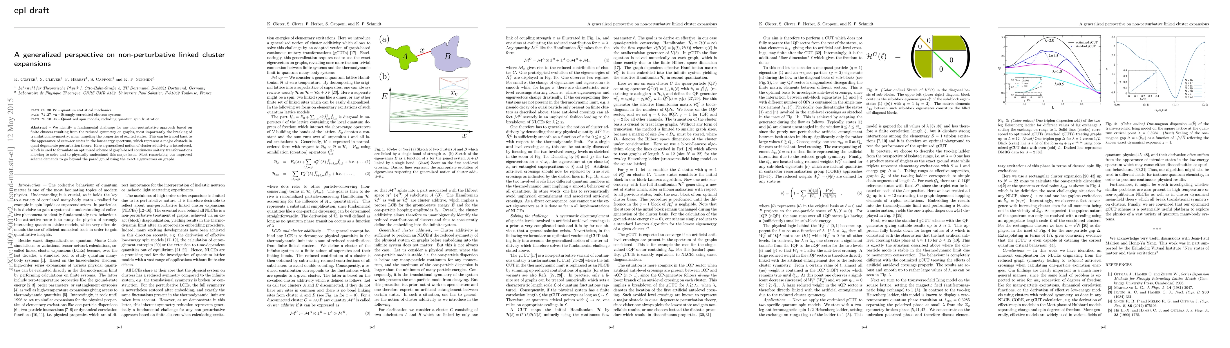 This paper addresses the challenge of reduced symmetry in non-perturbative linked cluster expansions (NLCEs) for excited states, introducing a generalized cluster additivity concept. It proposes an optimized graph-based continuous unitary transformation (gCUT) scheme to overcome these challenges, emphasizing the need to move beyond relying solely on exact eigenvectors for graph representations.