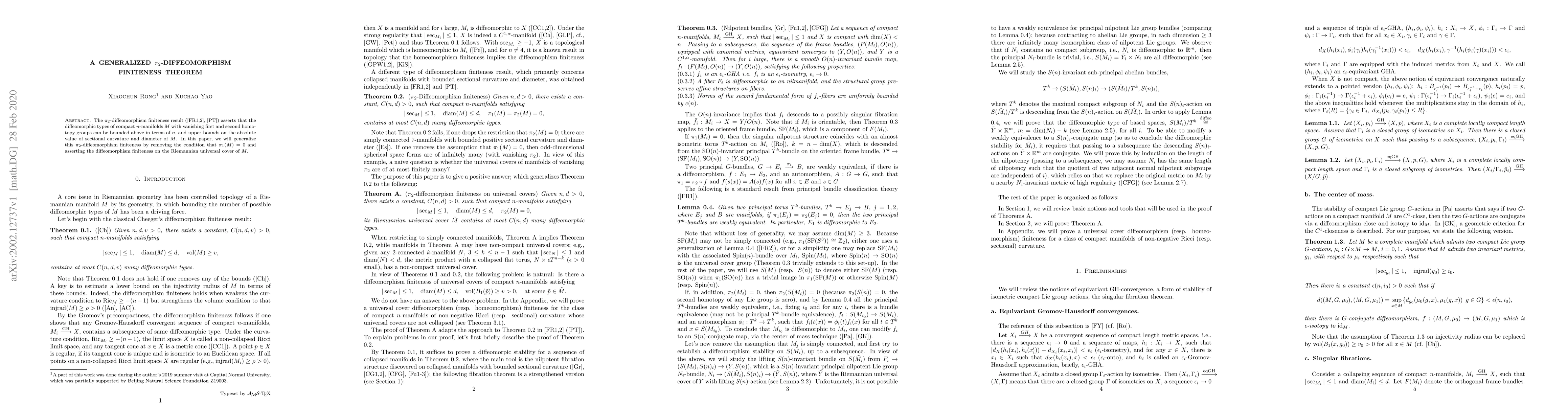 This paper generalizes the $\pi_2$-diffeomorphism finiteness theorem by removing the condition that $\pi_1(M)=0$, establishing finiteness of diffeomorphic types for compact $n$-manifolds with vanishing second homotopy groups, and bounding these types in terms of $n$, sectional curvature, and diameter.