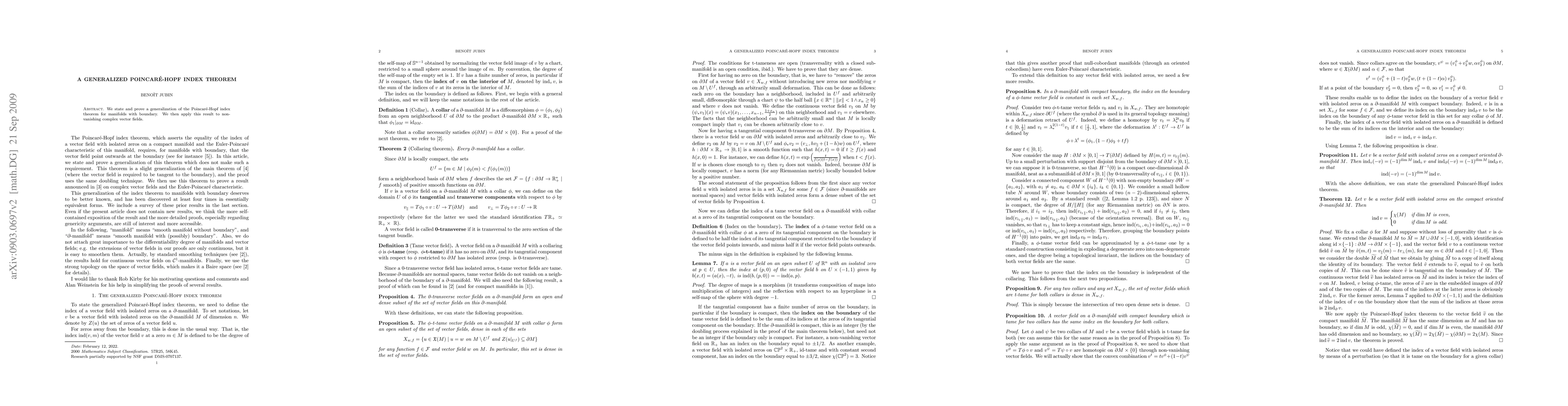 Summary: This paper generalizes the Poincaré-Hopf index theorem to manifolds with boundary and demonstrates its application to non-vanishing complex vector fields. The result extends classical theory and provides new insights into vector field behavior on such manifolds.