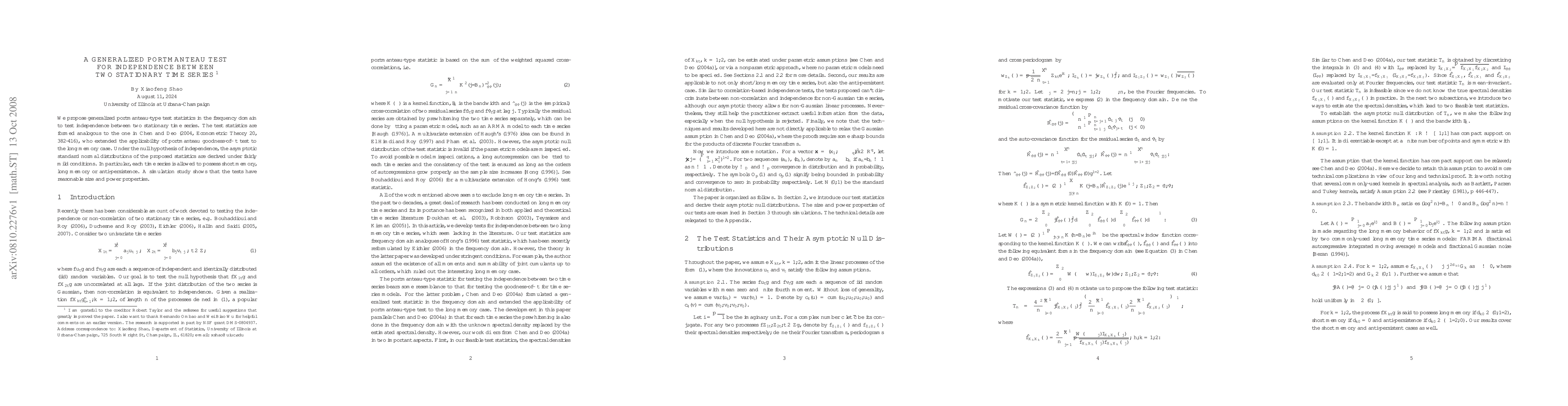 This paper proposes generalized portmanteau tests in the frequency domain to examine the independence between two stationary time series, extending previous methods to accommodate series with short or long memory. Simulation results indicate the tests maintain appropriate size and power.