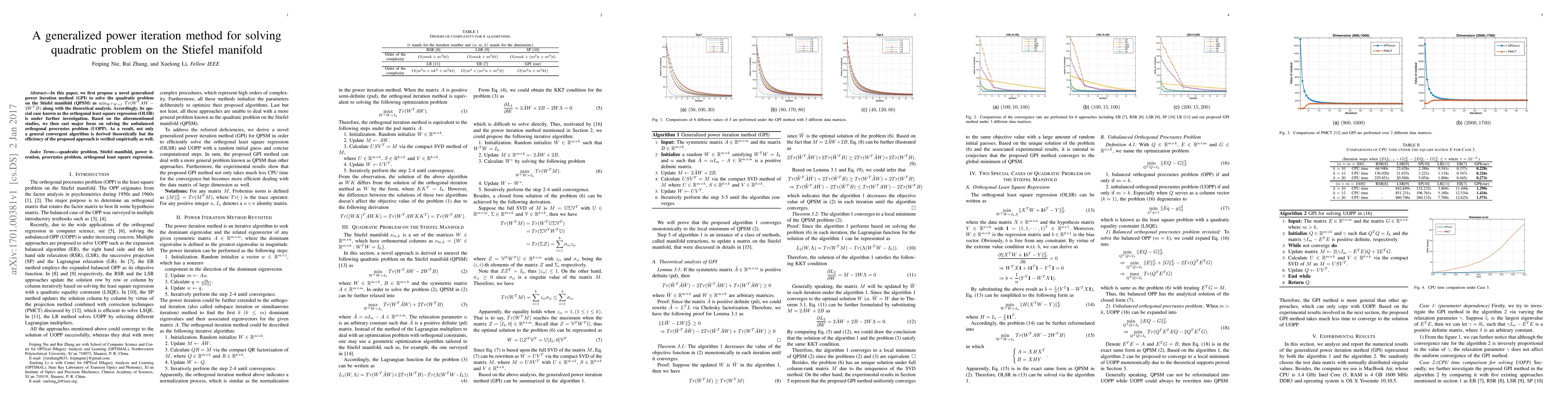 This paper introduces a generalized power iteration method (GPI) to solve the quadratic problem on the Stiefel manifold (QPSM) and its special case, orthogonal least square regression (OLSR). It also presents a theoretical and empirical analysis of the unbalanced orthogonal procrustes problem (UOPP) solution, demonstrating the method's convergence and efficiency.