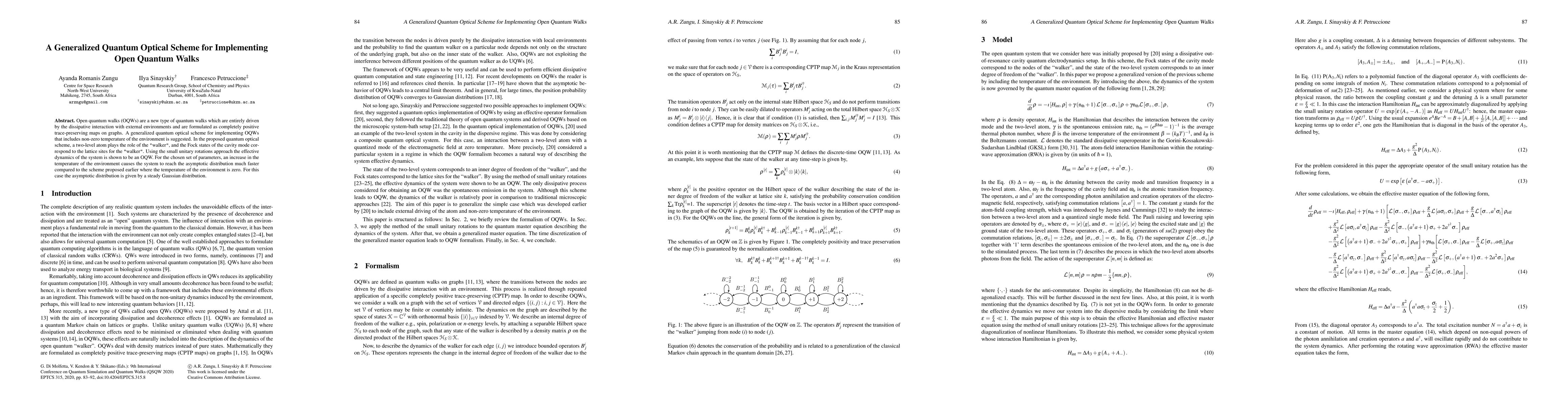 Researchers propose a quantum optical scheme to implement open quantum walks, which can reach equilibrium faster at higher environmental temperatures, with the system evolving into a steady Gaussian distribution.