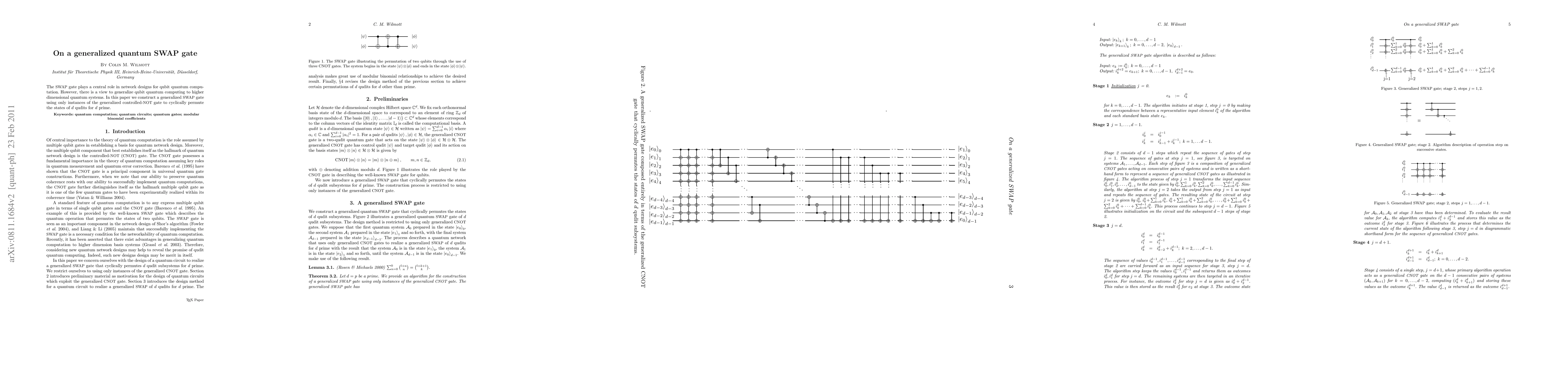 The SWAP gate plays a central role in network designs for qubit quantum computation. However, there is a view to generalize qubit quantum computing to higher dimensional quantum systems. In this paper we construct a generalized SWAP gate using only instances of the generalized controlled-NOT gate to cyclically permute the states of $d$ qudits for $d$ prime.
